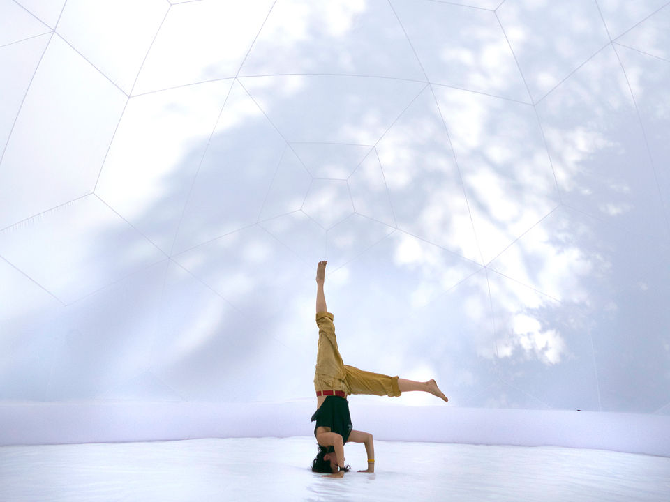 The White Dome holds possibility in simplicity. At night its blank surface can be infinitely transformed with projected media to create an immersive video environment. The roundness of the interior space feels expansive, and as people play inside the dome their cast shadows are magnified across the wall at a cinematic scale. In daylight the space is beautifully permeated by sunlight, and the white space carries a sense of flexible openness.